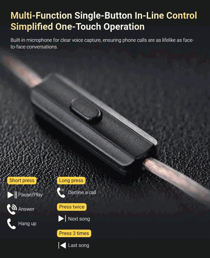 - The earphone comes with a professional-grade OFC (Oxygen-Free Copper) cable, which helps deliver cleaner sound and a longer lifespan. Furthermore, the 0.75 mm pin design allows easy cable replacement, making it a future-proof option for users. The standard 3.5mm plug ensures wide compatibility with smartphones, laptops, PCs, and audio players.