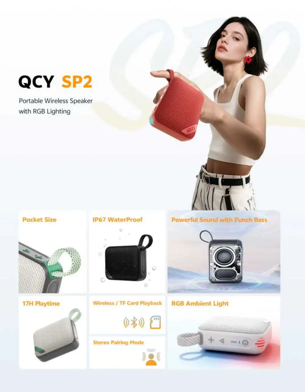 QCY SP2 Portable Wireless Speaker: Key Features: