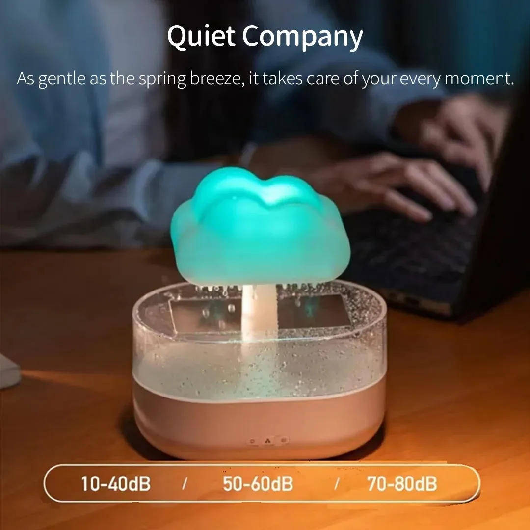 - The Rain Cloud Night Light Humidifier also works as an essential oil diffuser. You can easily add a few drops of your favorite essential oil to enjoy aromatherapy benefits. As the water droplets collide, the fragrance spreads evenly, improving air quality and helping you sleep better throughout the night.