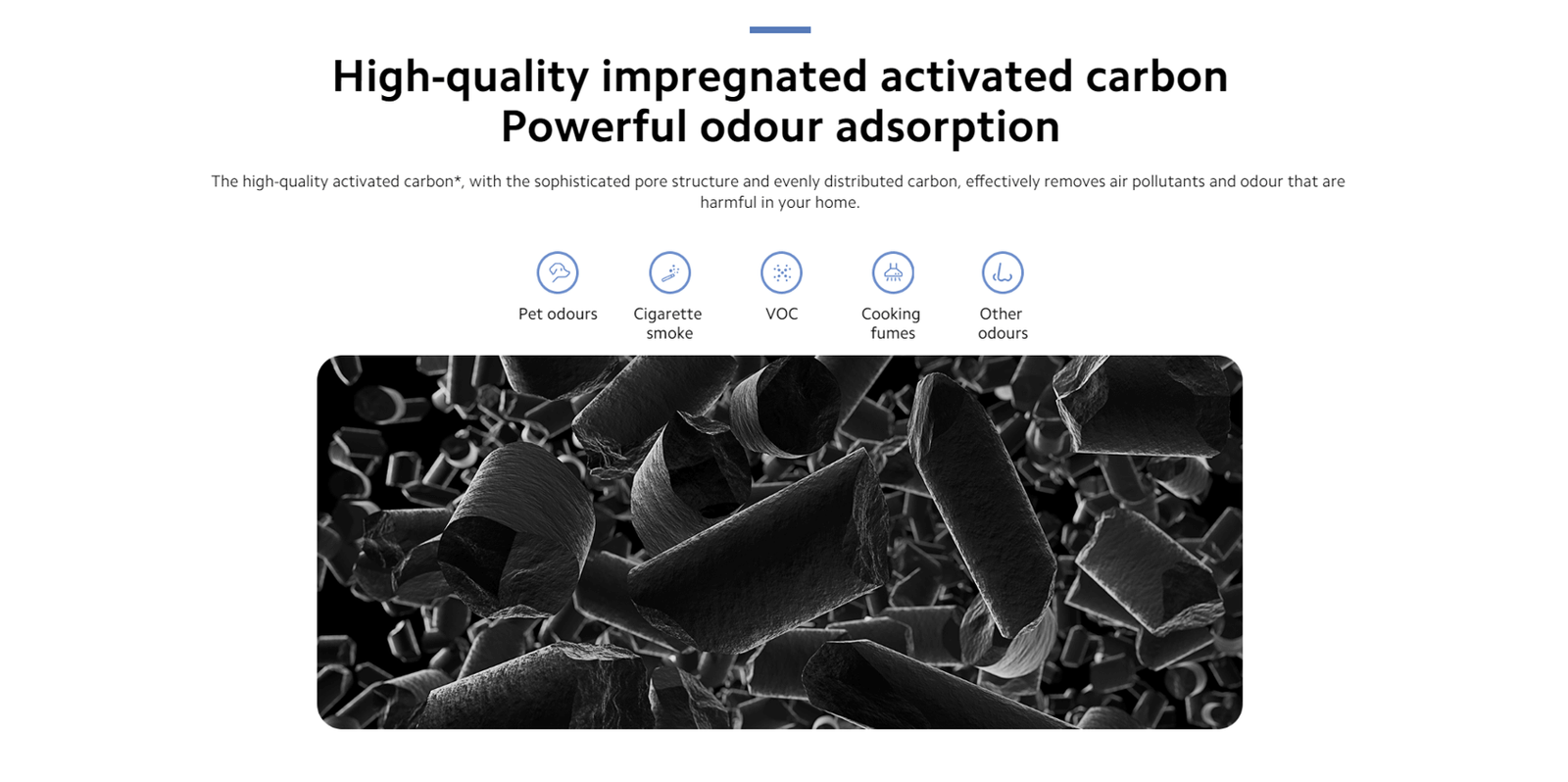 Activated Carbon Filter: Absorbs harmful gases like formaldehyde, VOCs, odors from cooking, smoke, and pets—keeping the air fresh and breathable.