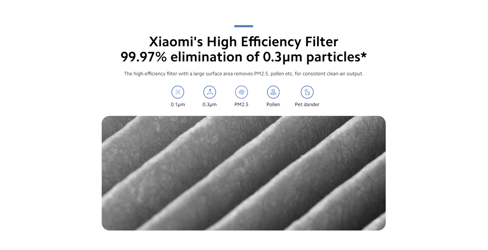 The Xiaomi Smart Air Purifier 4 Lite Filter is equipped with an advanced three-in-one filtration system that eliminates up to 99.97% of airborne particles as small as 0.3 microns. This includes dust, pollen, smoke, pet dander, and other harmful pollutants.